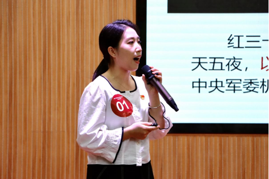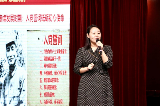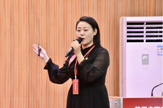 教师党支部书记王静静在闭幕式上进行微党课展示