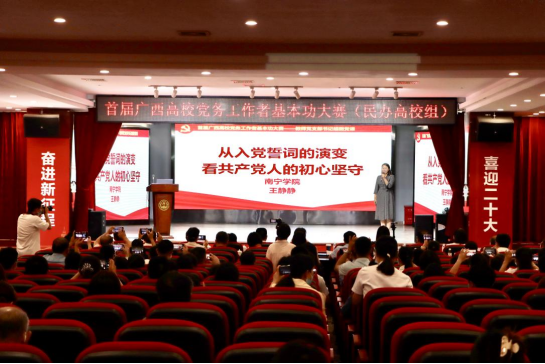 2022年9月29-30日,由自治区党委教育工委主办的首届广西高校党务工作者基本功大赛(民办高校组)在广西外国语学院落下帷幕。学校选派的教师党支部书记王静静、学生党支部书记陈璐、专职组织员梁肖杨代表学校参赛。经过激烈角逐,王静静和陈璐获得一等奖,梁肖杨获得二等奖。