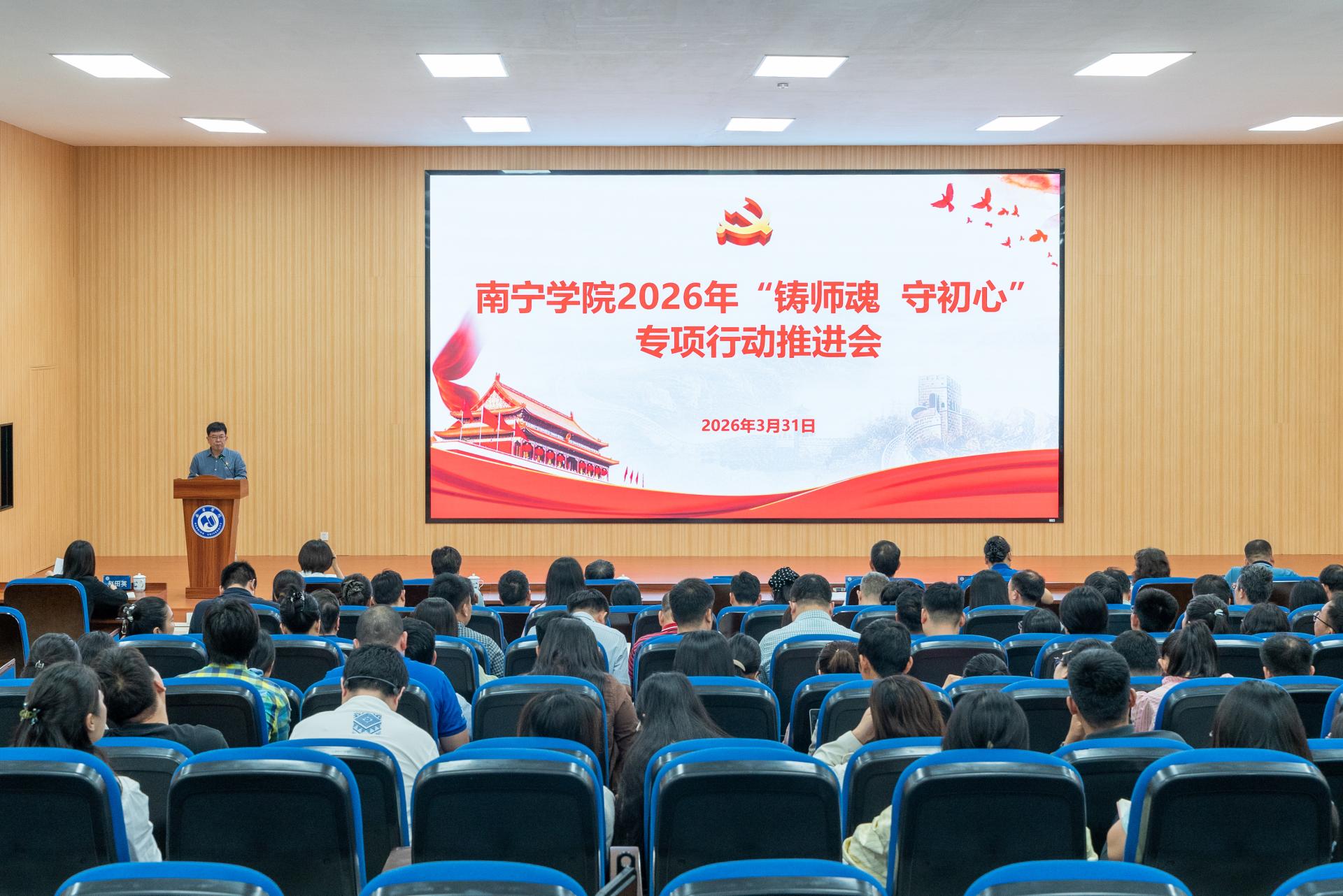 3月31日下午,学校在敷文园E104报告厅召开南宁学院2026年“铸师魂 守初心”专项行动推进会。会议由校党委副书记、副校长韦粤桂主持。